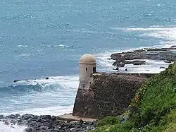 Most of San Juan's fortified walls have guerites (sentry boxes, "garitas" in Spanish) at various points. One of the guerites at San Cristóbal is the Fortín del Espigón ("breakwater fort"), most commonly known as the Garita del Diablo ("devil's sentry box"). It offers a vantage point to watchmen guarding the seashore while protecting them. This particular sentry box is one of the oldest parts of the fort, being built in 1634.[16]