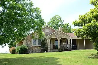 The Castleberry–Harrington Historic District encompasses a collection of three mixed masonry buildings erected between 1946 and 1950 by regionally known master mason Silas Owens Sr. on Castleberry Road in rural northwestern Faulkner County, Arkansas. All are single story stone structures, built of various shades of sandstone and other materials, and were built for various members of the extended Castleberry and Harrington families. One of them has an applied herringbone pattern of stonework for which Owens was particularly well known. The three houses are located on Castleberry Road, south of the hamlet of Republican.[2]