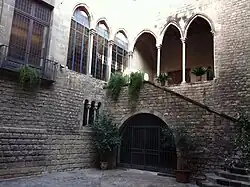 The palace, with a larger street wall than other dwellings, is typical of 15th-century bourgeois spaces, the best examples of which are in the Carrer de Montcada in Barcelona's Ribera district. The building is accessed through a portal and is characterised by a courtyard, which is the centre of the building and contains the main staircase that is either open or half closed.