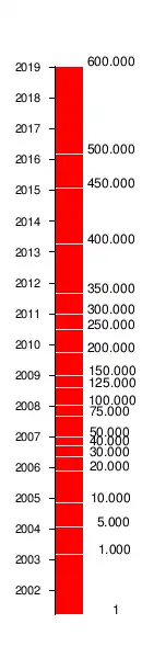 | 10,000 articles | 16 November 2004 | Unknown[9] |