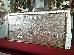 The silver-plated altar located within the retable