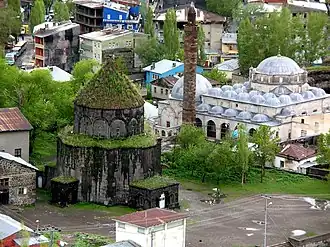 The Cathedral of Kars, also known as the Holy Apostles Church (Armenian: Կարսի Սուրբ Առաքելոց եկեղեցի, Karsi Surb Arakelots' yekeghets'i; Turkish: Aziz Havariler Kilisesi[11] or "Church of the Twelve Apostles" 12 Havariler Kilisesi)[1][9][13] is a former Armenian Apostolic church in Kars, eastern Turkey. Built in the mid-10th century by the Armenian Bagratid King Abas I (r. 928–953), it was converted into a mosque in 1579. In the 19th and early 20th century it was converted into a Russian Orthodox and later Armenian cathedral. In 1993 it was again converted into a mosque and is called Kümbet Mosque[3] (Turkish: Kümbet Camii, literally "domed mosque").[14] It currently comprises part of a larger Islamic complex that includes the Evliya Mosque, the biggest mosque in Kars.[15]