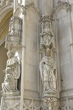 Other neo-Gothic statues decorate the portal of the east gavel. The statues are of Hungarian kings, including Charles I of Hungary, his wife Elizabeth of Poland, and Louis of Hungary. They are masterpieces of the Budapest sculptor Lajos Lantay.