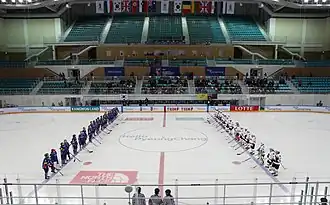 Catholic Kwandong University Gymnasium is located on the grounds of Catholic Kwandong University in Gangneung, Gangwon-do, South Korea. During the 2018 Winter Olympics, it is one of the two venues for Ice Hockey.[1] The official name as the Winter Olympic venue is Kwandong Hockey Centre (Korean: 관동 하키 센터, romanizedGwandong Haki Senteo).
