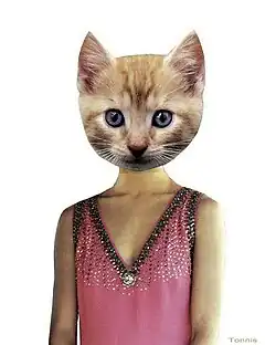 Catwalk! exhibits a series of collages created of cat's heads on women's physiques. The most known physiques displayed are those of Virginia Woolf "with big, sad eyes" and Kate Moss.[1]