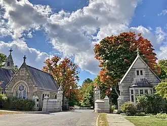 Cedar Hill Cemetery encompasses 270 acres (110 ha) and includes several historic buildings, including the Northam Memorial Chapel (built 1882), which was designed by Hartford architect George Keller, and the Superintendent's Cottage (built in 1875), which continues to be occupied by Cedar Hill's Superintendent to this day.[6]