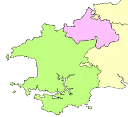Cemaes Rural District was formed in 1934 by the amalgamation of St Dogmells Rural District and Llanfyrnach Rural District. The council was administered from Cardigan, outside its area.[1][2]