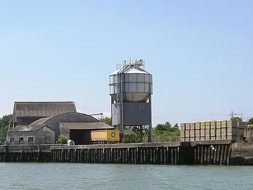 Cement Mills Halt primarily served the West Medina Cement Works,[5] which was owned and operated by Francis and Company Cement Manufacturers. Near the village of Northwood, was the extensive cement works of Messrs. Francis, Son, & Co., of Nine Elms, London, who employed about 100 people at the West Medina Cement Works in the manufacture of Portland and Medina cements.[6] The Francis Co. had the contract to supply all the Portland cement for the construction of the fourth Eddystone Lighthouse.[7]