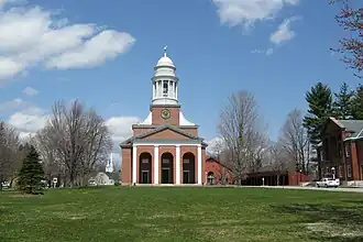 The Center Village District encompasses the historic village center of Lancaster, Massachusetts. Settled in 1643, it has few traces of its early history, but is now a well-kept rural town center with a predominantly residential and civic character. It includes the First Church of Christ, Lancaster, which is a U.S. National Historic Landmark,[2] and was listed on the National Register of Historic Places in 1977.[1]