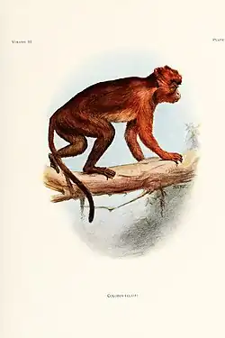 Central African red colobus is the traditional name for several species of red colobus monkey that had formerly been considered a single species, Piliocolobus foai. Central African red colobus monkeys are found in humid forests in the Democratic Republic of the Congo, the Republic of the Congo, the Central African Republic and South Sudan.[1]