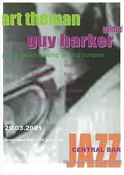 Musicians who played at the club included Scottish jazz guitarist Jim Mullen (voted world's 5th best guitarist in 1982),[1][2] Saxophonist Gilad Atzmon (who has recorded and performed with The Blockheads, Paul McCartney and Sinead O'Connor),[3] English jazz trumpeter and composer Guy Barker (appointed Member of the Order of the British Empire (MBE) for services to jazz),[4] acclaimed English alto saxophonist and clarinetist Peter King (who appeared on the soundtrack of the 1969 film The Italian Job and the film The Talented Mr. Ripley),[5] American drummer Gene Calderazzo,[6] English jazz drummer Martin Drew (who worked with Canadian virtuoso Oscar Peterson from 1974- 2007),[7] British drummer and composer Seb Rochford (Mercury Prize Nominee),[8] British saxophonist and composer Pete Wareham (Young Jazz Musician of the Year 1997),[9] multi-award winning jazz saxophonist Alan Barnes,[10] British saxophonist Martin Speake[11] and award-winning English jazz composer and pianist Zoe Rahman.[12]
