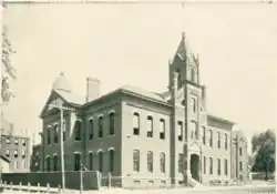 CCHS has roots in St. Mary's School, built at a cost of $26,000[nb 3][30] by Holy Trinity Parish in 1884 during the pastorate of Michael Weldon.[7]: 152 The building was located at the northeast corner of the intersection of Locust and Center Streets in Bloomington, Illinois.[31] Initially only a grade school, the building was altered in 1886 to add high school classes. Two graduates in 1898 composed the high school's first graduating class. The parish paid off the debt for the school building in 1909. In 1912 Illinois State University and the University of Illinois recognized St. Mary's high school curriculum. The graduating class that spring had twenty students.[10]