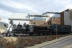On April 28, 1873, the city was visited by U.S. President Ulysses S. Grant and the first lady, who arrived with a group including Governor Elbert, ex-governor Edward M. McCook, Jerome B. Chaffee, Henry M. Teller, General Harney, and General Babcock. The party came to Black Hawk from Golden via train, then transferred to carriages for the transit to Central City. Upon arrival, the procession paraded through town, which was thronged with spectators, before stopping at the Teller House at 1 p.m. In preparation for their visit, the sidewalk leading to the entrance had been covered with silver bricks from the Caribou Mine, valued at about $13,000. President Grant was reportedly incredulous when he walked over the silver bricks to the entrance and learned that they were pure silver. After dinner and a reception, the party departed for Idaho Springs, the next stop on Grant's tour of Colorado.[14]