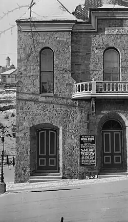 On May 22, 1874, a fire started in a Chinese laundry on Gregory street at 11 a.m. and spread quickly throughout the town. A request for help was sent to Golden and the Excelsior Fire Company took a special train to Central City to help fight the fire, arriving to cheers from the locals. Smoke billowing from the fire could be observed as far as Denver, which also sent a fire engine by train after receiving a dispatch to the mayor of Denver stating "The flames are still raging. Send assistance." By 3:30 p.m. the fire was under control, but not before destroying most of the city. The Teller House, Catholic church, Roworth's City Bakery, and several other structures survived the fire, while about 150 structures were destroyed. Many people lost their homes, businesses and belongings as a result, forcing the town to undertake a large effort to rebuild. Total losses from the fire were estimated to exceed half a million dollars.[8][15][16][17][18][19] To help prevent future fires, ordinances were passed to widen the city streets and build a water supply for fire prevention.[20]