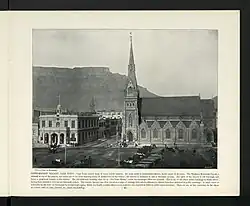 The church is the second oldest building on Greenmarket Square after the Old Town House located opposite it. Construction started in 1876 and completed on 12 November 1879[6] at a cost of £17,700 (equivalent to R5,000,000 in 2018).[2] The architect was Charles Freeman[6] and the building contractor was Thomas Inglesby.[7]