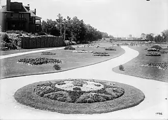 The park has two sections, Central Park East and West divided by Bank Street. To the southeast of the park is the landscaped area around Patterson Creek creating a continued stretch of greenery all the way to the Rideau Canal. Originally, the entire area of the park was that area around Patterson Creek. In the 1890s, work began on landscaping the area. Clemow Avenue was constructed, blocking the creek and creating the open space of the park. The work on the park was completed in 1907. In the 1960s, the city proposed extending Carling Avenue through the park to the canal. This caused an outcry in the community and led to the creation of the Glebe Community Association. Eventually, the plans were shelved.