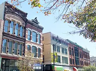 The Central Springfield Historic District is a 12-acre (4.9 ha) historic district in downtown Springfield. The district encompasses Springfield's oldest commercial district and is centered on the Old State Capitol. While the area was platted in 1822, only two buildings in the district predate the 1850s: the Old State Capitol and the Lincoln-Herndon Law Offices, both built in 1837. The majority of the district's buildings were constructed during Springfield's population boom in the 1860s and its subsequent growth in the latter half of the 19th century. These buildings included hotels, drug stores, groceries, clothing stores, and dry goods stores; some of the stores built in this period are still in operation. The businesses are also significant examples of 19th-century brick commercial architecture, including the Romanesque Pierick-Sommer Building and several works by prominent Springfield architects Helmle & Helmle.[1]