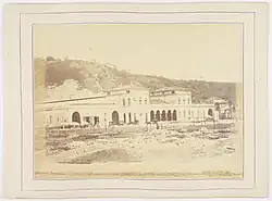 The construction of the first station in the centre of Rio de Janeiro began in 1855, to serve as the terminus of the new Estrada de Ferro Dom Pedro II (Dom Pedro II Railway) which was to connect the city, then the capital of Brazil, with the provinces of São Paulo and Minas Gerais. The location chosen for this station was the Campo de Santana, an area close to the city center and at the time the site of many government buildings. Its construction necessitated the demolition of the Igreja de Santa Ana (Church of Saint Anne) dating from 1735, but a wooden image of the saint, originating from Portugal, can still be found in a chapel at the station.[2][3] The station, then known as the Estação do Campo due to its location, was opened along with the first section of the railway line from Rio de Janeiro to Queimados in March 1858 in the presence of Emperor Pedro II, Empress Teresa Christine and the bishop.[4][5] The name of the station was shortly afterwards changed to Estação da Corte, in reference to the Imperial Court.[3]