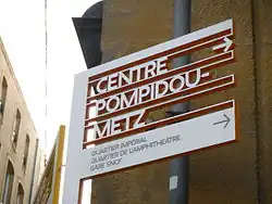 The Centre Pompidou-Metz edifice and surrounding Metz are sometimes used as support for the artistic production displayed during the temporary exhibitions. For example, the architectural structure of the Centre Pompidou-Metz was used as support for a visual art project by French visual artists Simon Geilfus, Yannick Jacquet, and Thomas Vaquié.[7] Also, French aerial photographer Yann Arthus-Bertrand captured Metz from high up, giving a privileged views of the museum and the city for the exhibition Views from above.[6]