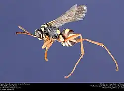 Ceropales is a genus of kleptoparasitic spider wasps from the sub-family Ceropalinae of the family Pompilidae. They are characterised by the taking of the spider prey of other solitary wasps, mainly Pompilidae but members of the Sphecidae that provision with spider prey are sometimes also hosts.[2] In some languages their name translates into English as "cuckoo spider wasp".