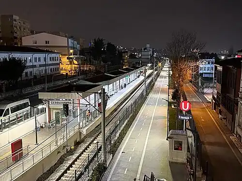 Cerrapaşa railway station (Turkish: Cerrapaşa istasyonu) is a railway station on the Istanbul-Pythion railway in Istanbul, Turkey. Opened together with the T6 shuttle line from Kazlıçeşme to Sirkeci on 26 February 2024, Cerrapaşa is the most recently opened railway station in Istanbul.[1] Built on the originally double-track right-of-way, the station has one side platform with one track. The pedestrian path just south of the track was the former right-of-way of the second track, which closed down in 2013.[2]