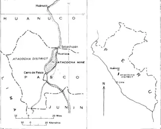 5. ^ Johnson, Robert; Lewis, Richard; Abele C., Guillermo (1955). Geology and Ore Deposits of the Atacocha District Departamento de Pasco Peru, USGS Bulletin 975-E, Geologic Investigations in the American Republics. Washington: United States Government Printing Office. pp. 337–387.