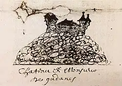 A sketch of the earlier Château de Gudanes as it looked in 1669