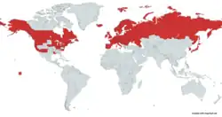 Fennoscandia South to the Pyrenees and from Ireland East through Northern, Central and Southern Europe (to South Italy) across the Palearctic into Russia and the Russian Far East and Sakhalin and Japan. In the Nearctic from Alaska to Nova Scotia and South to California. (see distribution map)[15][16][17]