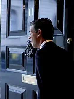 Rishi Sunak was appointed Chief Secretary to the Treasury by Prime Minister Boris Johnson on 24 July 2019, and Sajid Javid was appointed Chancellor of the Exchequer. Tensions between 10 Downing Street and the Treasury had come to a head in August 2019, when Johnson's Chief Special Adviser Dominic Cummings dismissed one of Javid's aides, Sonia Khan, without Javid's permission and without informing him. It was alleged that, during her dismissal, Cummings "went outside No 10 and asked an armed officer to enter the building and escort Khan off the premises."[1] In November 2019, following questions of a rift between the two men, Johnson gave his assurance that he would retain Javid as chancellor after the 2019 general election.[2] After the Conservative Party's landslide victory at the 2019 general election, Javid remained as chancellor and Sunak remained as Chief Secretary to the Treasury.