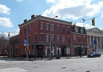 The Peter Rockwell House was built in 1832, as a Federal-style brick townhouse. It was modified for commercial use about 1865 to be a 2+1⁄2-story commercial building with a mansard roof. The Frederick Schneider House was built in 1846, is a two-story five-bay brick dwelling in the Greek Revival style. The Schneider/Kessler Chandlery was built in 1851, is a three-story six-bay brick commercial building. The buildings are reflective of the 19th-century business district of Erie. It was named Chandlery Corner because it is the site of the plant and store of Erie's first soap and candle maker.[2]