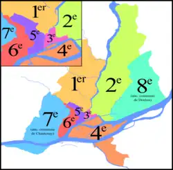 Since its incorporation into the commune of Nantes, the terms "-sur-Loire" and "-lès-Nantes" have been abandoned, and the toponym "Chantenay" now designates all the old districts of the former commune, as does "Bas-Chantenay", which designates those located closest to the Loire.[3]