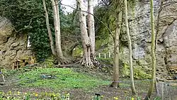 The early-fifteenth century Chapel of Our Lady of the Crag is located in an old quarry on Abbey Road beside the Nidd Gorge at Knaresborough and is an early 15th-century-chapel cut out of the sandstone of the river gorge cliff face. It is a Marian shrine on the old pilgrim's route to the now demolished Knaresborough Priory[2] and close to the ancient stone quarry that was used for building works at Knaresborough Castle, the parish church and elsewhere. It was also once known as Quarry Chapel or Our Lady of the Quarry.[3][1]