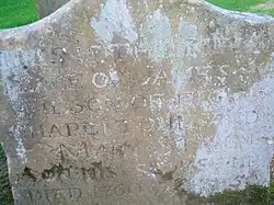 A finial from Chapelton House or possibly a 'wheat sheaf' from the old Monks' Well is used as a feature in the gardens.[34] Apart from pure ornamentation the finial can also function as a lightning rod, and was once believed to act as a deterrent to witches on broomsticks attempting to land on one's roof. On making her final landing approach to a roof, the witch, spotting the obstructing finial, was forced to sheer off and land elsewhere. An old lintel from a door is recorded in 1939 as being built into a wall in the garden with the inscription 'S.M. 1740', possibly standing for one of the 'Miller' family'.[34]