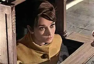 Cary Grant, who turned 59 years during filming, was sensitive about the 25-year age difference between Audrey Hepburn (33 at the time of filming) and himself, and was uncomfortable with their romantic interplay. To address his concerns, the filmmakers agreed to add dialogue that has Grant's character comment on his age and Regina being portrayed as the pursuer.[10]