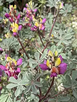According to Willis Linn Jepson, Stivers was in the U.S. Army at the time he first collected harlequin lupine. Jepson wrote, "With yellow banner and rose-pink wings it is a most beautiful species which is never mistaken by even the novice, nor confused with any other member of the genus. It was discovered by Lieutenant Charles Austin Stivers, U. S. A., at Summit Meadow on the Mariposa trail to Yosemite in or about the year 1862, and was named in his honor by Dr. Albert Kellogg (Proc. Cal. Acad. 2:192,—1862). Of Lieutenant Stivers little is known. He held the degree of Doctor of Medicine, and was at one time especially interested in the study of the marine algae. His name is mentioned occasionally in the pages of early proceedings of the Cal. Acad. Sci."[6]