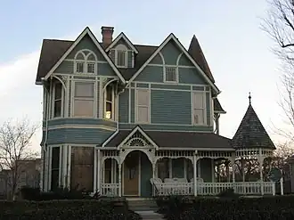 Charles Barr House is a historic home located at Greenfield, Hancock County, Indiana. It was built in 1893, and is a 2+1⁄2-story, Queen Anne style frame dwelling with a two-story rear wing. It sits on a brick foundation and has a steep gable roof. It features an elaborately detailed wraparound porch with a conical-roofed verandah.[2]