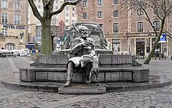 Buls became mayor of Brussels in 1881 and remained in office until 1899. At his initiative, policemen had to be able to speak both French and Dutch and bilingual signposting was established throughout the city. However, along with these reforms, his most lasting achievement was the result of his opposition to the grandiose architectural schemes of King Leopold II, and the resulting preservation of old parts of Brussels.[2] In particular, Buls was a steadfast defender and admirer of the Mont des Arts/Kunstberg and the Grand-Place/Grote Markt, now a UNESCO World Heritage Site, successfully proposing the 1883 city ordinance protecting the façades of the Grand-Place buildings and providing funds for their restoration, which took place between 1883 and 1923. In 1899, the architects of Brussels who had been involved in this restoration work paid for a memorial commemorating Buls, designed by Victor Horta and executed by Victor Rousseau, to be placed in the rebuilt ''L'Étoile''/''De Sterre'' guildhall on the Grand-Place. At the reopening of the restored Town Hall, Buls greeted Leopold II in Dutch, and the King replied in the same language, which was unusual at the time.[1] In 1999, a new fountain with a larger-than-life-sized seated statue of Buls and his dog was erected at the Place Agoraplein, close to the Grand-Place.
