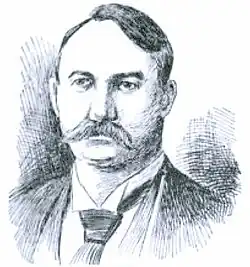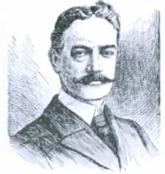 Cornell's first heat was versus the Leander Club crew of London, England, coached by Rudolph C. Lehmann. The members of the Leander Club were composed almost entirely of former Oxford and Cambridge oarsman. They had won the Cup seven times and were the four-time defending champion.[38] Leander was considered the best crew in England, and was the favorite to win the Cup in 1895. The race was a contrast of rowing styles. Cornell rowed the Courtney stroke, which was short and choppy compared to the Leander's long and sweeping stroke.[41] The heat was marred by controversy right from the start. Cornell and Leander crew took up their positions at the starting point. When the umpire asked if the crews were ready, F. D. Colson, the Cornell coxswain, answered "yes".[41] The Leander crew insisted two members shouted "No" and C. W. Kent, the crew's stroke, held up his hand.[42] The umpire insisted that someone from the English crew answered that they were ready and then gave the command to start the race. Both crews shot out from the starting line. Cornell rowed with strong even strokes, but only half of the Leander club was rowing. At that point, Leander stopped rowing, and C. F. Beggs and C. W. Kent, the Leander coxswain and stroke respectively, protested to the umpire. When the umpire did not tell Cornell to stop or return to the start, Cornell continued rowing at a leisurely pace, followed by the referee's boat. Cornell finished the course of one mile (1.6 km) and 550 yards (500 m) in 8 minutes and 11 seconds. This was more than a minute over the time they were rowing in practice. When they crossed the finish line, they were declared the winner of the heat by the umpire.[41] The Leander crew protested the Cornell victory, stating that they notified the umpire before he gave the notice to start the race. They appealed it to the Stewards of the Regatta, who met at the end of the day but they ruled in favor of Cornell victory. They adopted the following resolution: "Resolved, That the committee, while deeply regretting the most unfortunate misunderstand, feel that they must abide by the laws of boat racing and cannot review the decision of the umpire or starter."[41]