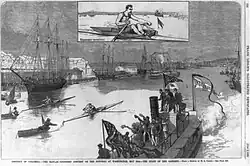 The start of the Hanlan-Courtney rowing contest on the Potomac River