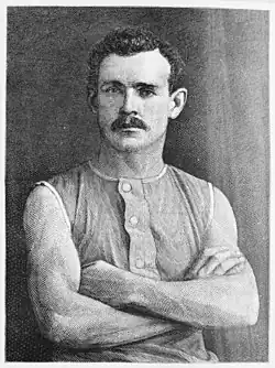 Courtney would never lose as an amateur rower and finished with a total of 88 victories in single and double scull races.[7] Among his major victories was the National Association single sculls championship in 1875 at Saratoga where he beat four competitors in the final heat, including noted rower of the day James Riley.[8] In 1876, he won the two amateur rowing championships at the Centennial Exposition in Philadelphia. He won the single scull championship in a time of 10 minutes and 4812 seconds on a 112-mile straightaway course. A few days later, he won the double scull championship (with partner Frank E. Yates) in a time of 9 minutes and 5212 seconds over the same distance.[9]