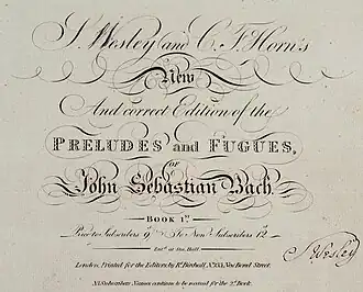 - (with Samuel Wesley) New and correct edition of the Preludes and Fugues of John Sebastian Bach – Johann Sebastian Bach (1810)