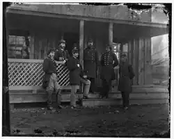 From September to November 1862, Sawtelle was acting chief quartermaster of the Army of the Potomac, and supervised the transport of supplies from Washington to the front lines during the Maryland campaign, and he was promoted to lieutenant colonel of United States Volunteers on November 12, 1862.[4] He served as chief quartermaster of II Corps during the Rappahannock Campaign, and he was chief quartermaster of the Right Grand Division during the Battle of Fredericksburg in December 1862.[4] He was chief quartermaster of the Army of the Potomac's Cavalry Corps from January to June 13, 1863, including participation in Stoneman's 1863 raid.[4] In June 1863, he oversaw the removal of supplies from Aquia Creek, Virginia and subsequent relocation to Alexandria, Virginia.[4] Sawtelle was assistant chief quartermaster of the Army of the Potomac from June to August 1863, and supervised the transport of supplies from Washington, D.C to Alexandria for shipment north during the Gettysburg campaign.[4] From August 1863 to February 1864, Sawtelle served as chief quartermaster of the Union Army's Cavalry Bureau in Washington.[4] In February 1864, he was reduced to his permanent rank of captain.[4]