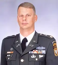 In 1989, he graduated from Special Forces Assessment and Selection and graduated from the Special Forces Qualification Course in 1990. He was stationed at Fort Bragg for several years, where he served as an operational-detachment-alpha commander in 3rd Battalion, 3rd Special Forces Group, and later the 4th Psychological Operations Group, leading multiple missions to Botswana.[4] He was Ranger qualified and held the triple canopy of Ranger, Special Forces and Airborne.