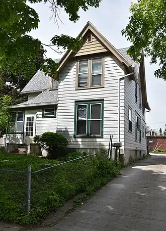 The Charles H. and Lena May Weitz House is a historic building located in Des Moines, Iowa, United States. This 1½-story frame dwelling features a gable-front-and-wing configuration, a front porch located in the el of the facade, a single-story bay window on the south elevation, a dormer window on the facade, and steeply pitched roofs. Behind the house is a two-story, brick outbuilding. It is one of the few brick out buildings in the neighborhood.[2] Both were constructed about 1891 by Charles H. Weitz for his home and his workshop. He was a partner and elder son of the founder of Charles Weitz & Sons, which was a prominent Des Moines construction firm in the late 19th and early 20th-century. During his time with the company, Charles H. Weitz "introduced modern methods of construction to this family business, thereby assuring its potential for growth."[2] The Weitz Company grew to become a nationally recognized full-service general contractor. The house and outbuilding were listed together on the National Register of Historic Places in 1998.[1]