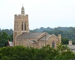 Barber's grandest church design is the Gothic-style Church Street Methodist Church (1931), which was codesigned with New York architect John Russell Pope. The church, the congregation of which Barber was a member,[1] features an imposing bell tower, central courtyard, and interior arcades.[15] The respective roles of Barber and Pope in the church's design are unknown.[15] Other churches designed by Barber in the Gothic style, though on a much smaller scale, include the First Methodist Church in Gatlinburg and Barton Chapel in the Robbins community of Scott County.
