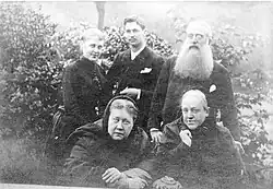 Standing left to right: Vera Vladimirovna Johnston, Charles Johnston, Colonel H.S. Olcott. Seated: H.P. Blavatsky and her sister Vera Petrovna de Jelihovsky