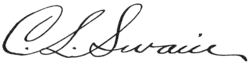 Charles Luther Swain was born April 19, 1866, at Fincastle, Brown County, Ohio.[1][2] His father, Samuel Luther Swain was born in Pennsylvania[2] and was a miller.[1] Charles followed that trade for some time, and then removed with his family to West Union, Adams County, Ohio, at age 13, where he lived until moving to Cincinnati, Ohio.[1]