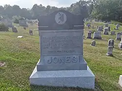 Charles Pinckney Jones was born in Pendleton County, Virginia. He enlisted in the Confederate States Army. He served as a Private in the 18th Virginia Cavalry;[1] and according to the Fort Stevens Confederate order of battle, the unit was assigned to Imboden's and W.L. Jackson's Brigade participating in the Gettysburg Campaign, skirmishing the Federals in western Virginia. Later, the cavalry served in the Shenandoah Valley before disbanding in April 1865. He attended the University of Virginia Law School graduating in 1868.[1] He established a law practice in Monterey. On January 17, 1872, he married Martha Jane Wilson, great-great-great granddaughter of Colonel John Wilson, a longtime member of the Virginia House of Burgesses until his death in 1773. His son was state treasurer Edwin B. Jones.[2]