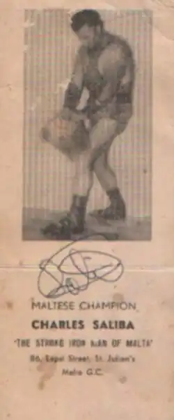 Charles "Ironman" Saliba (1929–1982), was a performing oldtime strongman from the island of Malta who performed feats of strength shows during the 1960s, 1970s and early 1980s. Saliba was known as the "Ironman" or the "Man of Iron" and was also known as the strongest man in Europe.[1][2][3][4]