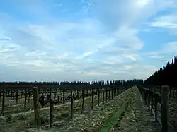 Grapevines growing on the grounds of the Bronco Wine Company in Ceres, California, where Charles Shaw wine is produced.